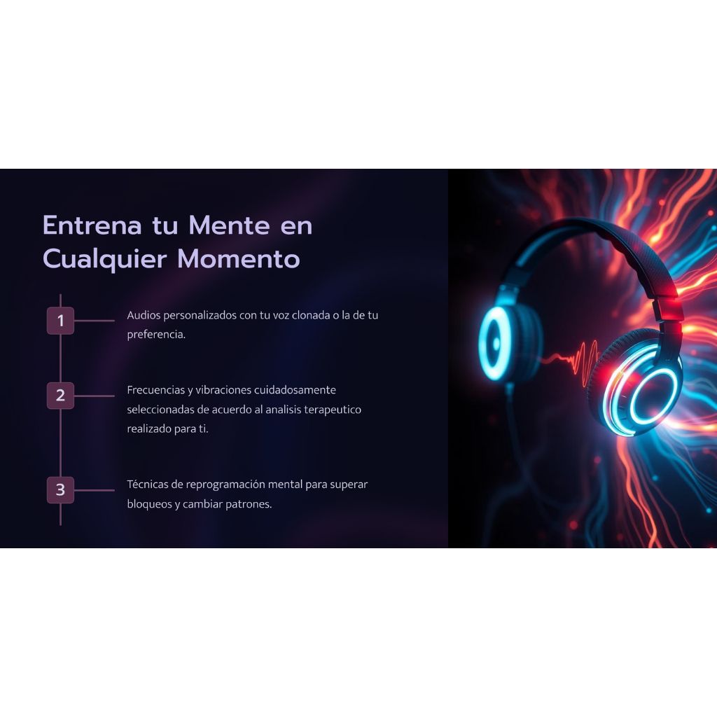 🎧Tratamiento HipnoVibes 🎧 Reprograma tu mente en 3 meses. 🔹Método: Hipnosis personalizada con tu información personal, sonidos binaurales, y frecuencias. 🔹Objetivo: Reprogramar creencias, aumentar confianza, atraer abundancia y mejorar bienestar emocional.